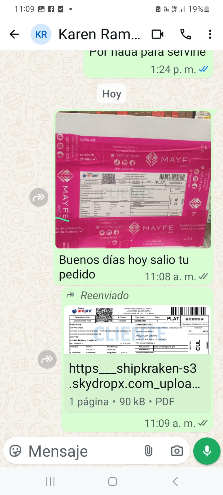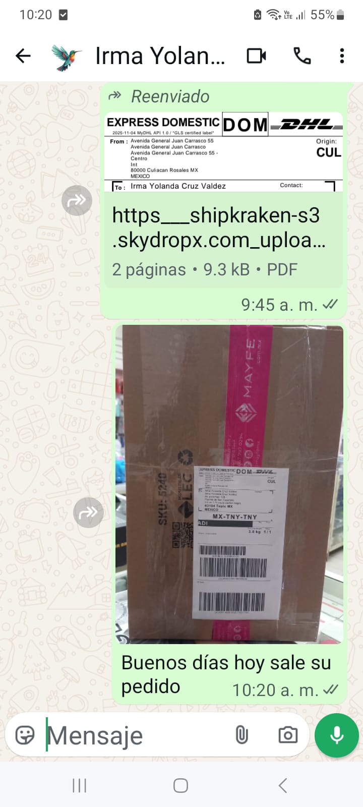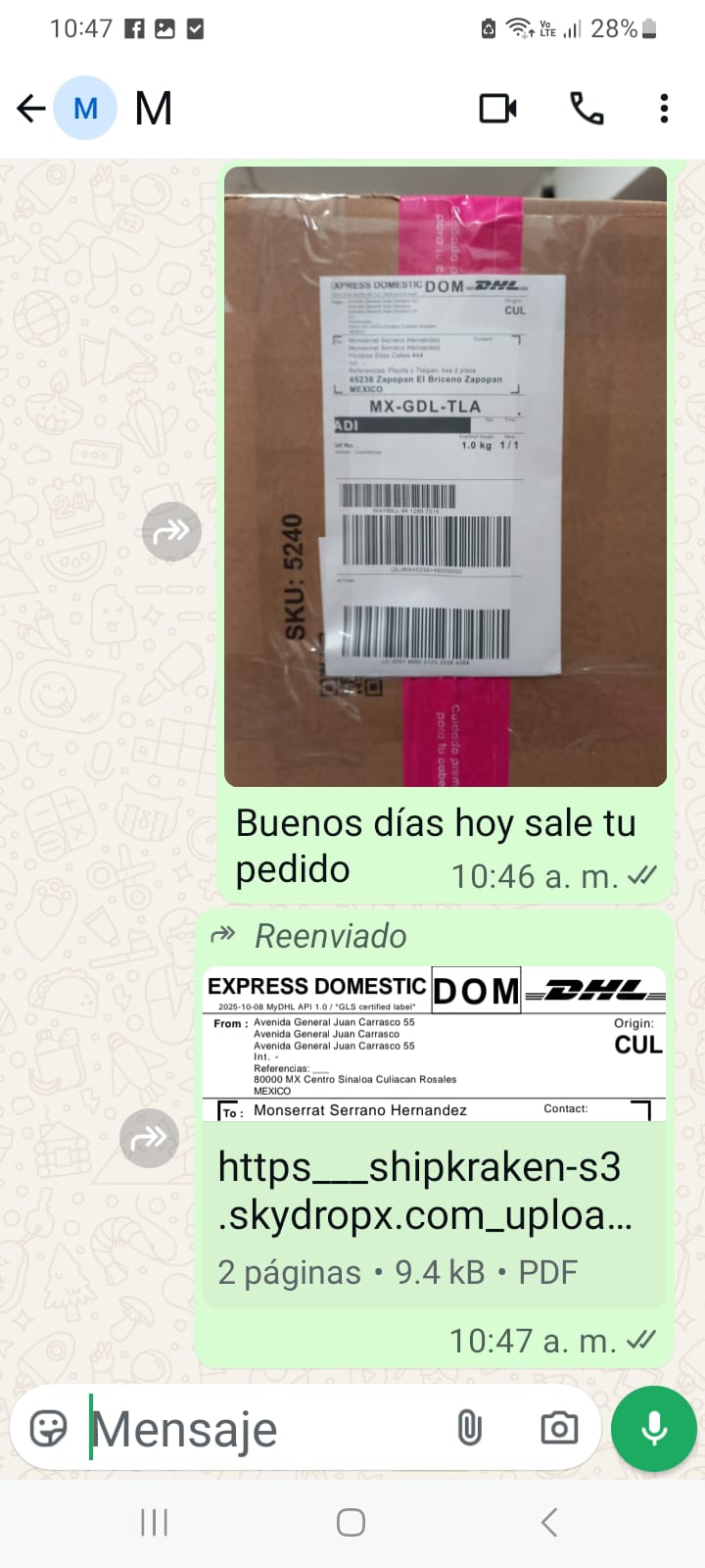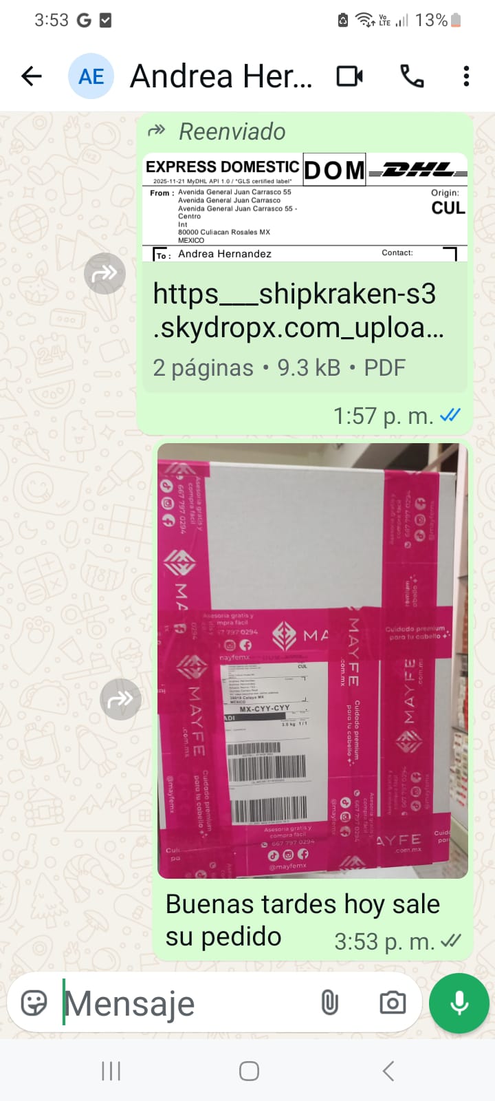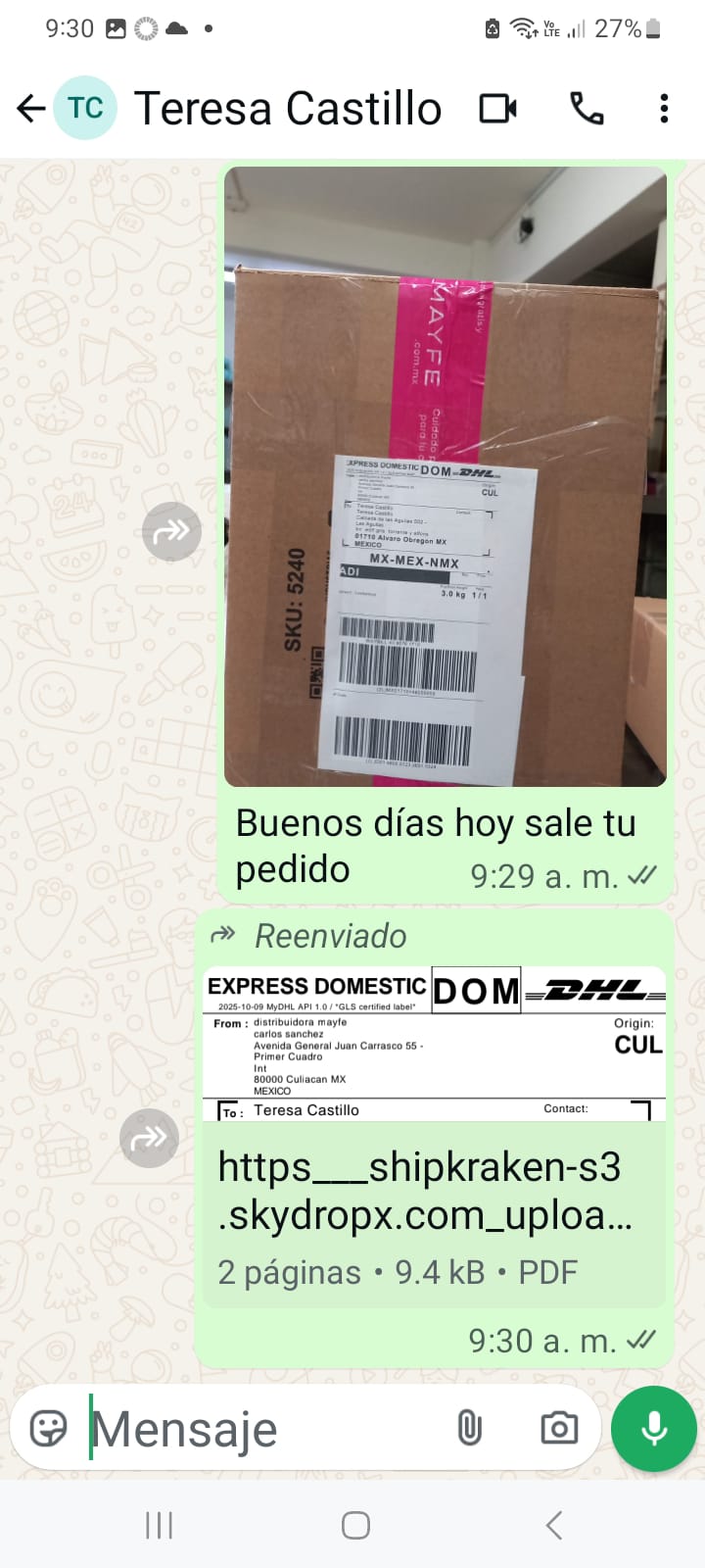 - Incluye # seguimiento.